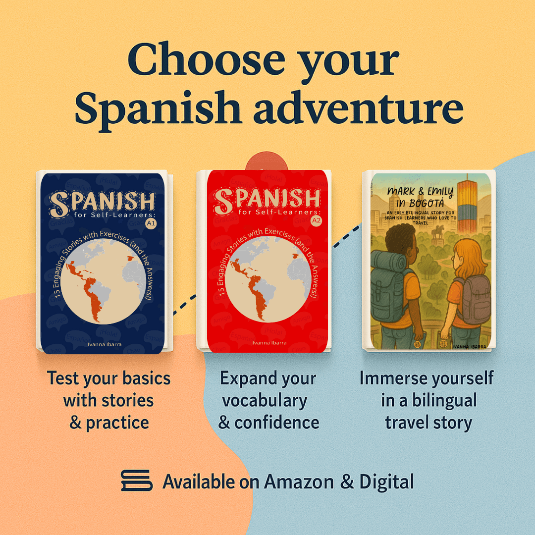 These books are your bridge: from knowing Spanish to actually using it—with stories, audio, and gentle guidance.